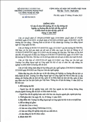 Tuyển sinh Thông báo lịch Bồi dưỡng, thi và cấp chứng chỉ Nghiệp vụ HDDL, ĐHDL Nội địa và Quốc tế (Đợt thi Tháng 11/2025) Posted on Tháng 10 29, 2025 by khoadulich FTC và HMC chung tay hướng về vùng bão Thái Nguyên: Lan tỏa tinh thần nhân ái và trách nhiệm cộng đồng Khi đam mê được gọi tên tại FTC